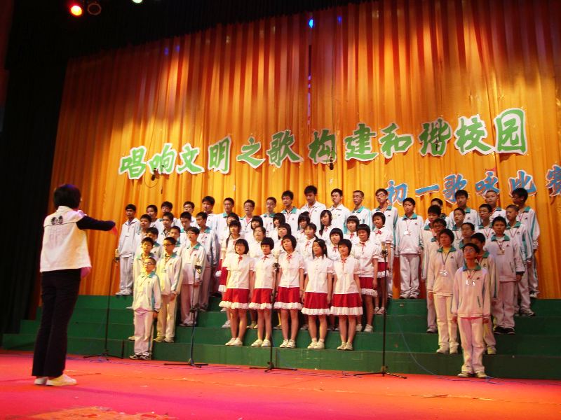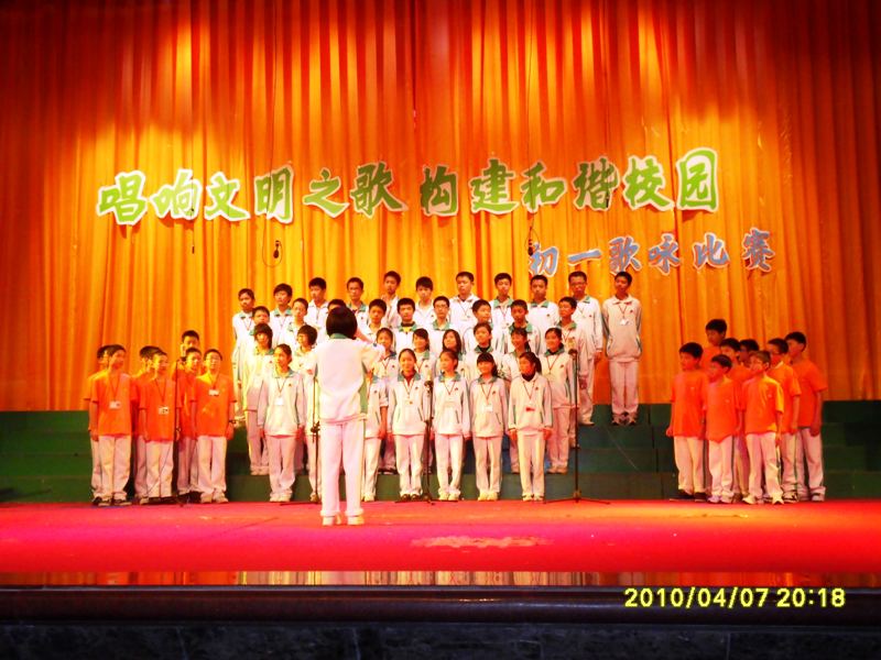本著“快樂學(xué)習(xí),健康成長”的宗旨,我校初中部初一年級組于4月7日晚在學(xué)校體育館舉辦了一場以“唱響文明之歌,構(gòu)建和諧校園”為主題的年級歌詠賽。在趣味盎然的比賽過程中,各班同學(xué)精神飽滿,激情高昂,引吭高歌,盡顯風(fēng)流,各具特色的演唱博得全場的陣陣掌聲。各班參選歌曲無不充滿和諧、溫馨、愛國、青春、陽光等氣息。是他們,唱響校園的和諧之歌,同時也唱出了當代中學(xué)生的朝氣和心聲,更展示了各班良好的精神風(fēng)貌和和諧的校園氛圍。整場比賽精彩紛呈,高潮迭起,同學(xué)們的喝彩、吶喊聲,使體育館成為一片歡樂的海洋。