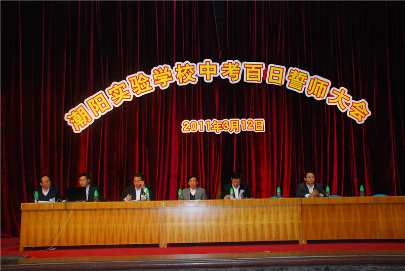 陽春三月,春暖花欲開,2011年3月12日,旭日和風(fēng),陽光燦爛。雖然春寒尚為褪盡,但我校體育館卻異常溫暖、溫馨�?傂埿iL、學(xué)部黃校長、張杰檳副校長及學(xué)部兩處領(lǐng)導(dǎo),九年級全體師生近千人齊聚在學(xué)校體育館,隆重舉行了“2011年中考百日沖刺誓師大會”。
