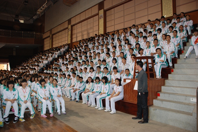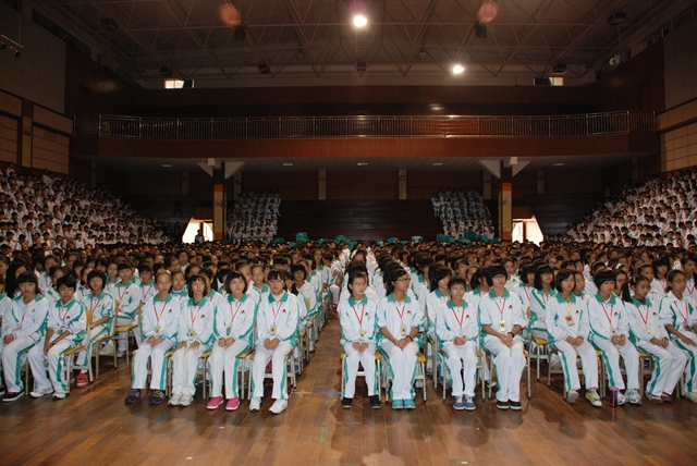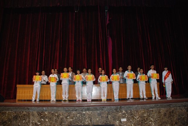 11月19日下午,初中部七、八年級全體師生齊聚體育館,隆重召開期中考試總結(jié)表彰大會,會議由石副校長主持�! � 會議在嘹亮的國歌聲中拉開帷幕,首先由政教處劉主任宣讀了本次期中考試中受表彰的集體和個人,接著與會的學(xué)校領(lǐng)導(dǎo)為獲獎同學(xué)頒獎,在期中考試中取得優(yōu)異成績的學(xué)生代表真誠大方地介紹了自己的學(xué)習(xí)方法及經(jīng)驗,并對同學(xué)們提出了良好祝愿。針對這次考試,教務(wù)處吳主任做了全面而又詳實的總結(jié),并對同學(xué)們提出了殷切的期望。 最后黃校長進(jìn)行了總結(jié)性講話,希望同學(xué)們刻苦學(xué)習(xí),講究學(xué)習(xí)方法,時刻用目標(biāo)激勵自己,他以樸實親切的語言、耳熟能詳?shù)墓适�、令人警醒的事例使全體同學(xué)受益匪淺。他還希望能通過本次期中總結(jié)表彰大會,激發(fā)同學(xué)們爭先意識,掀起學(xué)習(xí)的高潮,勝不驕,敗不餒,在接下來的月考和期末考試時,有更多的同學(xué),以自己的汗水贏得熱烈的掌聲,以自己的勤奮贏得更多的喝彩!