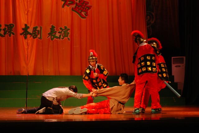 為落實(shí)語(yǔ)文課程標(biāo)準(zhǔn)的要求,使學(xué)生能深入理解教材、挖掘教材,進(jìn)一步加強(qiáng)語(yǔ)文與生活、語(yǔ)文與社會(huì)的聯(lián)系,讓學(xué)生在活動(dòng)中感悟,在活動(dòng)中創(chuàng)新,在活動(dòng)中成長(zhǎng),潮陽(yáng)實(shí)驗(yàn)學(xué)校初中部八年級(jí)于4月18日在學(xué)校體育館舉行了第三屆“我型我秀,演繹書(shū)趣”課本劇創(chuàng)作與表演比賽。 上學(xué)期寒假,八年級(jí)語(yǔ)文組老師指導(dǎo)學(xué)生利用假期,編寫(xiě)了課本劇劇本,本學(xué)期各班經(jīng)過(guò)緊張的排練,4月18日下午和晚上分兩場(chǎng)表演,日前圓滿(mǎn)結(jié)束。這一幕幕課本劇,從課本到劇本,從劇本到演出,有演員們辛勤的付出,有師生心靈的交流。本次課本劇匯演創(chuàng)意無(wú)限,或改編,或反串,或美妙的音樂(lè)劇,或適當(dāng)?shù)默F(xiàn)代元素,整個(gè)演出陣容龐大,形式豐富,精彩紛呈,充分展示了同學(xué)們對(duì)課本的理解和表達(dá)能力,演員們的演出充分展現(xiàn)了劇中人物的喜怒哀樂(lè)和豐滿(mǎn)的性格!尤其是210班的《丑小鴨》、211班的《石壕吏》、201班的《白毛女》、208班的《斑羚飛渡》不管是從視覺(jué)還是聽(tīng)覺(jué),都給觀眾帶來(lái)了一場(chǎng)充滿(mǎn)魅力和激情的演繹盛宴。 (王凌云報(bào)道) ![]() 白毛女 ![]() 斑羚飛渡 ![]() 半截蠟燭 ![]() 變色龍 ![]() 丑小鴨 ![]() 范進(jìn)中舉 ![]() 范進(jìn)中舉2 ![]() 孔乙己 ![]() 羚羊木雕 ![]() 石壕吏 ![]() 唐雎不辱使命 ![]() 威尼斯商人 ![]() 楊志賣(mài)刀 ![]() 智取生辰綱 ![]() 最后一課 |