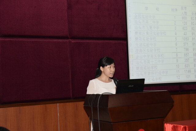 2014年我校中考取得輝煌成績(jī),實(shí)現(xiàn)了歷史性的突破:潮陽區(qū)中考考生32612人,我校馬子煒同學(xué)以772分奪得總分狀元。潮陽區(qū)前10名我校包攬前9名,前100名我校占78人,前200名我校占144人。汕頭市750分以上的考生共568人,其中我校103人,名列全市第一。 為更好地總結(jié)反思學(xué)校2014屆中考情況,激勵(lì)先進(jìn),鼓舞士氣,使2015屆中考備考工作做得更加扎實(shí), 10月9日晚7點(diǎn),潮陽實(shí)驗(yàn)學(xué)校初中部全體教師齊聚四樓多功能廳,隆重舉行2014年中考總結(jié)會(huì)議。 會(huì)議由石文成副校長(zhǎng)主持,首先由教務(wù)處吳劍主任對(duì)我校2014屆中考進(jìn)行了細(xì)致分析,提出了需傳承發(fā)揚(yáng)的優(yōu)良傳統(tǒng)。接著初三各學(xué)科備課組長(zhǎng)通過事例與數(shù)據(jù)詳盡地介紹了科學(xué)備考經(jīng)驗(yàn),展示了畢業(yè)班老師們團(tuán)結(jié)拼搏的工作作風(fēng)。2014屆初三年級(jí)組杜華濤組長(zhǎng)分享了三年備戰(zhàn)中考的心得與體會(huì),2015屆初三年級(jí)組黃高穩(wěn)組長(zhǎng)表達(dá)了將全力以赴爭(zhēng)創(chuàng)佳績(jī)的決心。最后,初中部黃根林校長(zhǎng)及總校張復(fù)昌校長(zhǎng)做了重要講話,他們?cè)史挚隙私衲曛锌妓〉玫妮x煌成績(jī),也指出了在中考中存在的不足及今后努力的方向。 此次會(huì)議,為全體教師指明了中考備考方向、明確了備考目標(biāo)。我們相信在學(xué)校領(lǐng)導(dǎo)的正確領(lǐng)導(dǎo)下,經(jīng)過全體同仁的努力奮斗,明年的中考一定能再創(chuàng)輝煌。
