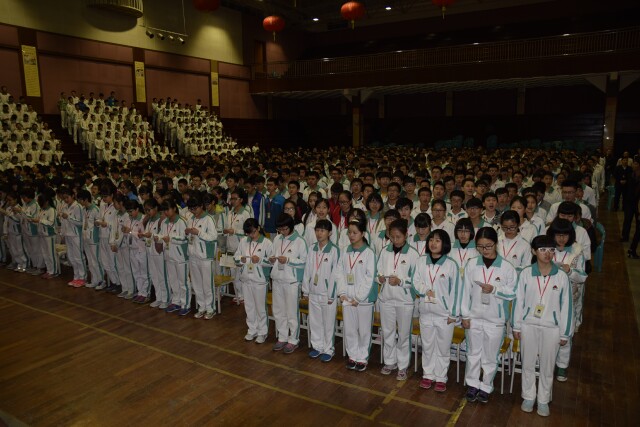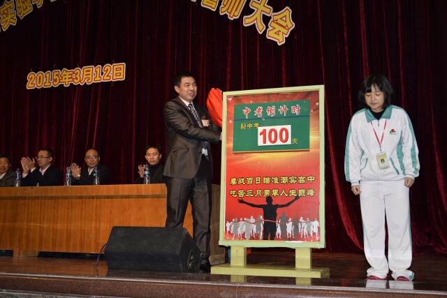 3月12日晚7點(diǎn),潮陽實(shí)驗(yàn)學(xué)校2015屆中考百日誓師大會在學(xué)校體育館隆重舉行。初三年級全體師生出席了本次大會,大會由初中部副校長石文成主持。 大會在雄壯嘹亮的國歌聲中拉開了帷幕。首先由初三年級黃高穩(wěn)組長和第一次�?紶钤崟匝嗤瑢W(xué)一起為100天倒計(jì)時揭牌,吹響了向2015中考沖鋒的號角。 接著學(xué)生代表張婕同學(xué)發(fā)言,她借自己的經(jīng)歷向同學(xué)們傳遞了有夢想有信心有方法就會有成功的信念,表達(dá)了對學(xué)校、老師的感激和沖刺中考必勝的信心。教師代表田正剛老師則引用十三歲就考入北大的才女田曉菲的文章激勵學(xué)子們要有偉大的夢想,要點(diǎn)燃激情、奮力拼搏。他們的發(fā)言讓臺下的學(xué)子信心百倍! 在會上黃高穩(wěn)組長向全體學(xué)子提出了六條寄語,并代表全體初三老師向同學(xué)們保證:竭盡全力、踐行潮實(shí)精神,為同學(xué)們釋難解疑,為同學(xué)們保駕護(hù)航! 緊接著初三各備課組提出了中考寄語,或幽默詼諧,或語重心長,引發(fā)了同學(xué)們陣陣熱烈的掌聲。 隨后初中部黃根林校長作了聲情并茂的講話,他對初三學(xué)子們獻(xiàn)上了衷心的祝福。“既然你們選擇了大海,就必須揚(yáng)帆遠(yuǎn)航;既然你們選擇了遠(yuǎn)方,就必須風(fēng)雨兼程;既然你們選擇了藍(lán)天,就必須展翅翱翔;既然你們選擇了中考,就必須全力以赴!”黃校長的講話讓全體師生充滿了信心與力量。 “壯志在我胸,任性拼百日問心無愧,陽光總在風(fēng)雨后;學(xué)子當(dāng)自強(qiáng),幸福盼六月人生無悔,我的未來不是夢!”同學(xué)們的錚錚誓言掀起了整個大會的高潮,氣勢排山倒海,彰顯了潮實(shí)學(xué)子中考必勝的信念。 本次誓師大會點(diǎn)燃了初三年級全體師生的激情,營造了濃厚的備考氛圍。中考百日決戰(zhàn)的號角已經(jīng)吹響,我們堅(jiān)信潮實(shí)2015屆初三學(xué)子定能全力以赴、努力拼搏、鑄就輝煌! ![]() 大會現(xiàn)場 ![]() 石文成副校長主持大會 ![]() 揭牌儀式 ![]() 張婕同學(xué)發(fā)言 ![]() 田正剛老師講話 ![]() 黃高穩(wěn)組長講話 ![]() 黃根林校長講話 ![]() 學(xué)生宣誓 |