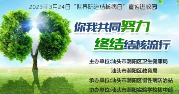 2023年3月24日是第28個世界防治結(jié)核病日,為增強學(xué)生對結(jié)核病相關(guān)知識的了解,進一步推動學(xué)生保持良好行為習(xí)慣、主動定期檢測,遏制結(jié)核病疫情在校園內(nèi)傳播,我校初中部聯(lián)合汕頭市潮陽區(qū)衛(wèi)生健康局和汕頭市潮陽區(qū)教育局開展了“你我共同努力,終結(jié)結(jié)核流行”為主題的“...