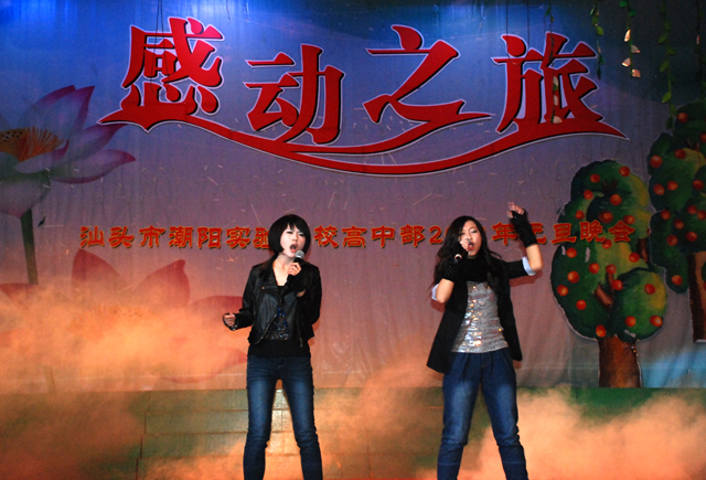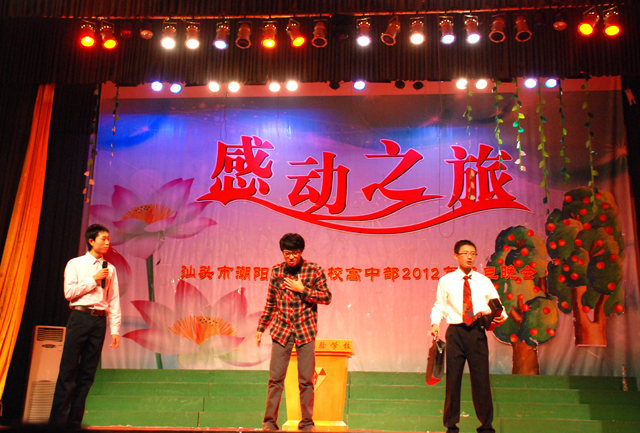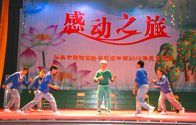 本場(chǎng)晚會(huì)以“感動(dòng)之旅”為主題,不僅展示了潮陽(yáng)實(shí)驗(yàn)學(xué)校學(xué)生青春洋溢、積極樂(lè)觀的一面,更豐富了學(xué)生的課余生活。2012年,我們相信,在全體師生的共同努力奮斗下,汕頭市潮陽(yáng)實(shí)驗(yàn)學(xué)校的明天會(huì)更加燦爛!