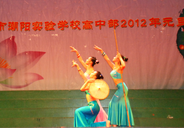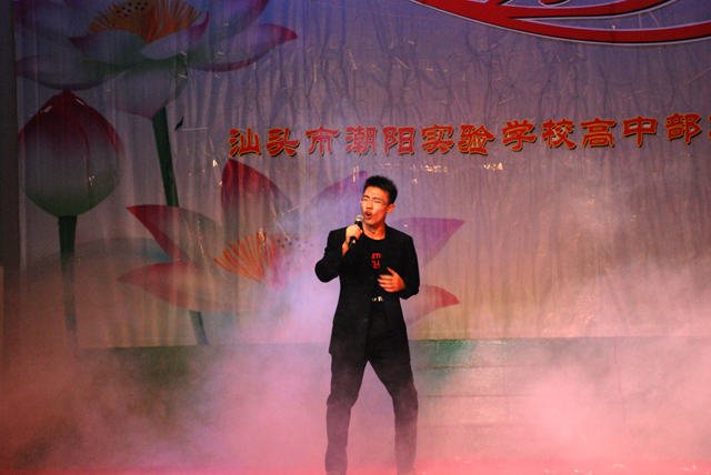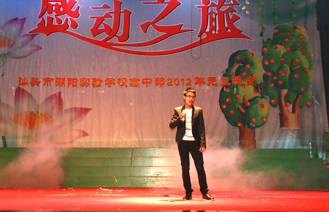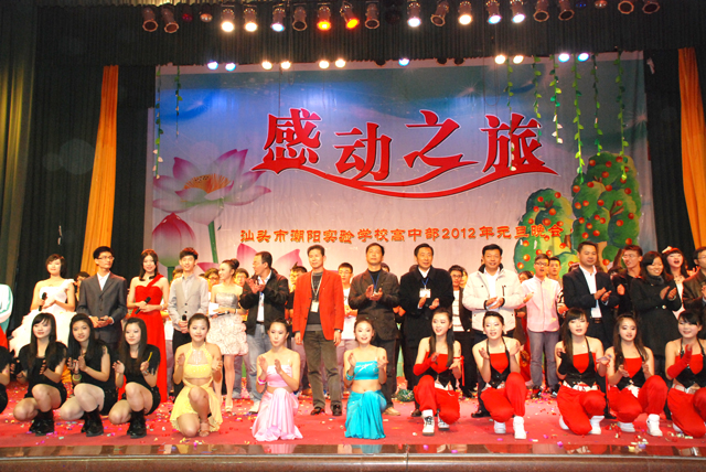2011年12 月 30日晚 ,汕頭市潮陽(yáng)實(shí)驗(yàn)學(xué)校高中部“感動(dòng)之旅——2012年元旦文藝晚會(huì)”在體育館隆重舉行,學(xué)校創(chuàng)辦人鄭立平董事長(zhǎng),學(xué)校張復(fù)昌校長(zhǎng)、林少?gòu)?qiáng)副校長(zhǎng),高中部楊啟富副校長(zhǎng),初中部黃根林校長(zhǎng)、張杰檳副校長(zhǎng)、石文成副校長(zhǎng),小學(xué)部鄒丹校長(zhǎng)、秦世進(jìn)副校長(zhǎng)、王修穩(wěn)副校長(zhǎng)等領(lǐng)導(dǎo)應(yīng)邀出席了晚會(huì),出席本次文藝晚會(huì)的還有高一高二年級(jí)全體師生和部分學(xué)生家長(zhǎng)。