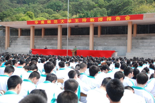 3月21日上午三、四節(jié)課,華南師范大學(xué)王玲教授在高中部大操場(chǎng)面對(duì)全體高中學(xué)生,做“善用心理戰(zhàn)術(shù),決勝高考”的專(zhuān)題講座。王玲教授開(kāi)場(chǎng)風(fēng)趣幽默,迅速的拉近與學(xué)生的距離,洪亮的聲音,優(yōu)雅的姿態(tài),恰到好處的肢體語(yǔ)言,精彩貼切的例子,娓娓道來(lái),緊扣學(xué)生的心弦,切合學(xué)生的實(shí)際情況,把學(xué)生心中的困惑,學(xué)習(xí)中的遇到的困難,考試中的種種挫折,做了精彩細(xì)致的分析。報(bào)告分為考前心理調(diào)整,考中精神勝利法,考后善于總結(jié)反思,用真實(shí)的事例提出問(wèn)題,解剖問(wèn)題,解決問(wèn)題,給學(xué)生注入了強(qiáng)大的信心和面對(duì)高考的勇氣。同學(xué)們用陣陣掌聲回報(bào)王玲教授精彩的報(bào)告,報(bào)告會(huì)在和諧融洽的氣氛中結(jié)束。