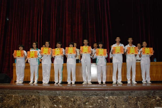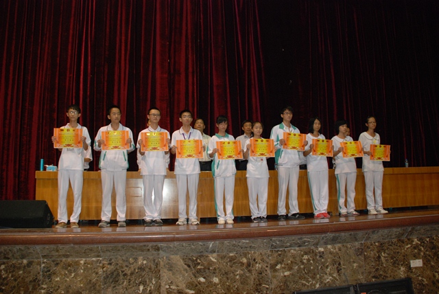 學(xué)校校長(zhǎng)張復(fù)昌,副校長(zhǎng)林少?gòu)?qiáng),教務(wù)主任張仕平,政教主任鄭楚堅(jiān)等學(xué)校領(lǐng)導(dǎo)出席了表彰會(huì)。 大會(huì)在教務(wù)副主任林其宏主持下拉開了序幕,首先,教務(wù)處張仕平主任宣讀了在這次考試中取得優(yōu)異成績(jī)的學(xué)生名單,并由出席會(huì)議的領(lǐng)導(dǎo)給獲獎(jiǎng)的學(xué)生頒發(fā)了獎(jiǎng)狀,大會(huì)在熱烈的掌聲中掀起了高潮。 頒獎(jiǎng)儀式結(jié)束后由學(xué)生代表高一(5)班的林晴和高一(16)班的陳東寧發(fā)言,他們向同學(xué)們介紹了自己在學(xué)習(xí)上的一些經(jīng)驗(yàn)和方法,引起了同學(xué)們的極大興趣。之后,政教主任鄭楚堅(jiān),對(duì)同學(xué)們?cè)趯W(xué)習(xí)、紀(jì)律方面提出了新要求,為同學(xué)們以后的學(xué)習(xí)、生活提供了準(zhǔn)則。 接著,高一年級(jí)組組長(zhǎng)李春雷,對(duì)高一學(xué)生入學(xué)一個(gè)月來的學(xué)習(xí)情況做了詳盡而細(xì)致的分析,指出同學(xué)們?cè)谇耙欢螌W(xué)習(xí)中的漏洞,并針對(duì)高一新生的畏難心理做了學(xué)習(xí)方法上的指導(dǎo),指明了今后努力的方向。同學(xué)們面對(duì)老師充滿真情的講話,時(shí)而報(bào)以會(huì)心的微笑,時(shí)而以掌聲表達(dá)對(duì)老師的感謝,會(huì)場(chǎng)氣氛和諧而熱烈。 金秋十月,高一年級(jí)的第一次月考表彰會(huì),在全體師生激情的掌聲中落下了帷幕。
