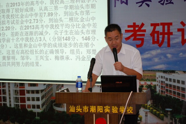 2013年8月31日下午,潮陽實驗學(xué)校在高中部多功能廳召開了2013屆高考研討會。出席會議的有全體校務(wù)委員以及高中部新、老高三年級的教師和各級年級組長、教研組組長共200多人。鄭立平董事長親臨會議,仔細(xì)聆聽并就今年高考情況發(fā)表了精彩的講話。會議上高中部教務(wù)處主任張仕平首先對2013年學(xué)校高考的成績作了詳細(xì)的分析和總結(jié),并對2014年的備考指出了方向。各學(xué)科組長張剛軍、朱玉田、侯建偉、林其宏、謝賀林以及班主任代表信兆華先后在會議作上了發(fā)言,與大家分享2013年備考的經(jīng)驗和對2014年高考的憧憬。學(xué)校副校長、高中部負(fù)責(zé)人張復(fù)昌充分肯定2013年學(xué)校高考取得的優(yōu)異成績,并對在成績背后辛勤奮斗在第一線的教師給予衷心的感謝和親切的慰問,同時對2014的高考寄予了深切的厚望,激勵學(xué)校領(lǐng)導(dǎo)和全體教師擰成一股繩,心往一處想,勁往一處使,共同拼搏,為2014年高考再創(chuàng)輝煌業(yè)績而不懈奮斗。
