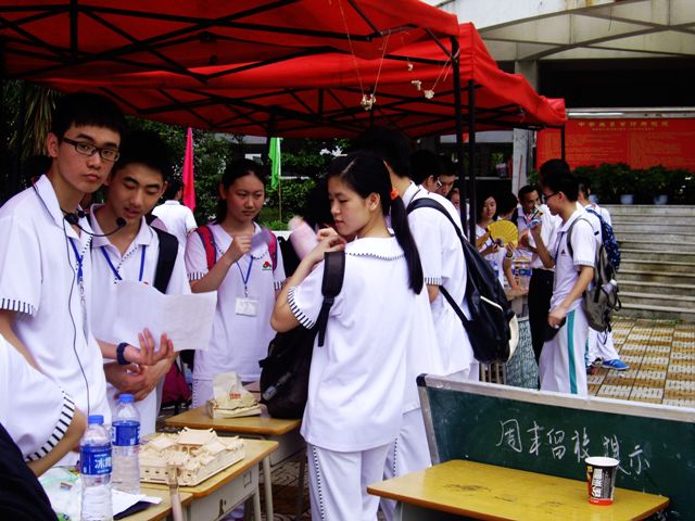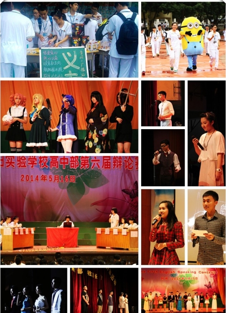 一系列豐富多彩的學(xué)生活動(dòng)充分展示了實(shí)校學(xué)子的精神風(fēng)采。5月13日晚飯后,胡楊詩(shī)社在高中部一樓多功能廳舉行朗誦比賽,拉開了今年開放周學(xué)生活動(dòng)的序幕。大規(guī)模學(xué)生社團(tuán)展示活動(dòng)是在5月15日下午活動(dòng)課,各社團(tuán)經(jīng)過近兩個(gè)月的精心準(zhǔn)備,為學(xué)校師生和來賓展示了我校學(xué)生豐富多彩的學(xué)生活動(dòng)。學(xué)部學(xué)生會(huì)在體育館舉行的“潮實(shí)好聲音”吸引了一千多位師生前來觀看;書畫社邀請(qǐng)到全國(guó)書法協(xié)會(huì)會(huì)員張敏老師、廣東省書法協(xié)會(huì)會(huì)員陳楷波老師到現(xiàn)場(chǎng)參與書畫社的現(xiàn)場(chǎng)師生書畫展示和義賣活動(dòng);漢學(xué)社在高三樓前小廣場(chǎng)舉行了中國(guó)傳統(tǒng)建筑模型展示活動(dòng);五弈棋社在高一樓下舉行了象棋、圍棋等棋類比賽;話劇社、菁羽社、廣播站聯(lián)合在舉行了為潮陽(yáng)福利院孤殘兒童募集善款的義賣活動(dòng);快手社開展了魔方比賽活動(dòng);實(shí)杰舉行了班花展示活動(dòng);廣播社在廣播站舉行了播音體驗(yàn)周活動(dòng);海韻文學(xué)社舉行了盛宴Ⅱ暨海韻文學(xué)社建立9周年活動(dòng)……。5月15日晚,高中部英語(yǔ)組、英語(yǔ)角所主辦的第五屆英語(yǔ)演講比賽總決賽在體育館舉行,12位選手優(yōu)雅的英語(yǔ)演講、多彩的才藝展示贏得在場(chǎng)高一高二師生的陣陣掌聲。5月16日,高一高二年級(jí)舉行了第六屆“辯響實(shí)校,論出風(fēng)采”辯論賽,參賽選手唇槍舌劍,場(chǎng)面十分激烈,贏得師生的陣陣掌聲。
