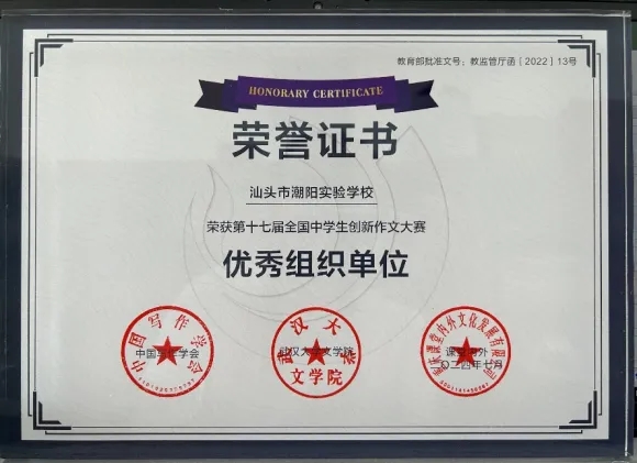 14人!潮實(shí)學(xué)子于全國中學(xué)生創(chuàng)新作文大賽總決賽中榮獲嘉獎(jiǎng)