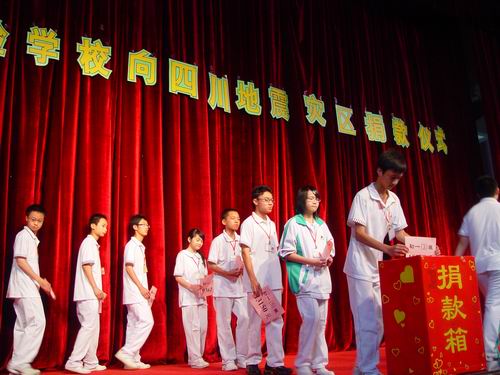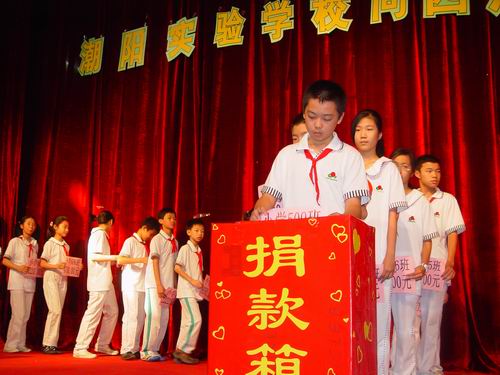 5月12日,四川省發(fā)生了強烈地震,受災(zāi)嚴(yán)重,我校和實驗幼兒園師生員工,發(fā)揚“一方有難,八方相助”的優(yōu)良傳統(tǒng),踴躍捐款支援災(zāi)區(qū)。5月15日下午,我校和幼兒園舉行向地震災(zāi)區(qū)捐款儀式,師生員工捐款金額達(dá)1071290元。