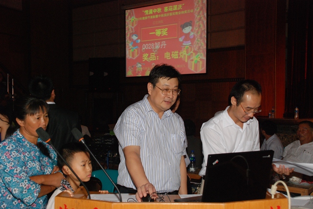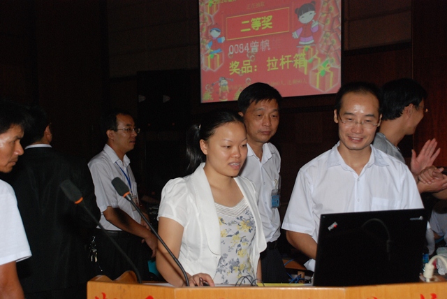 三、抽獎(jiǎng)。本次抽獎(jiǎng)活動(dòng)共投入資金20萬元購買獎(jiǎng)品。共設(shè)置五個(gè)獎(jiǎng)項(xiàng)。獎(jiǎng)品有平板電腦、現(xiàn)金、電磁爐、電飯鍋、迷爾音箱、手拉箱、花生油等等。獎(jiǎng)品豐厚,獲獎(jiǎng)面廣,令每一位教職員工笑逐顏開,拍手稱快。