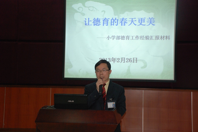 2013年2月26日晚上7:30分,汕頭市潮陽實驗學校在初中部四樓多功能廳隆重舉行潮陽實驗德育工作研討會。出席會議的有全體校務委員,各學部政教處正、副主任、年級組長、全體班主任、各生活部的主管共200多 人。會議由學校副校長、高中部負責人張復昌親自主持,小學部副校長王修穩(wěn)、初中部副校長張杰檳、高中部副 校長林少強先后在會議上作了生動、精彩的演講報告。最后,張復昌校長作了激情的總結。充分肯定了三個學部在德育教育工作上所作的不懈努力,并取得顯著成績,一所近萬名學生的學校,能夠一直以來,安全無事故、師生零違紀,這就是我們以德為先,讓每個學生都獲得成功的教學理念所贏得;三位德育工作校長所暢談的都是他們學部德育工作的成功經(jīng)驗以及未來的設想,各學部所完成的或正在進行的國家級、省級、市級、區(qū)級的德育教育課題研究,為潮陽、汕頭乃至全國德育教育樹立于典范;希望在座的200多位德育教育骨干教師,經(jīng)過本次德育科研交流,發(fā)揚成績,開拓創(chuàng)新,讓我們的德育教育工作做得更加出色。