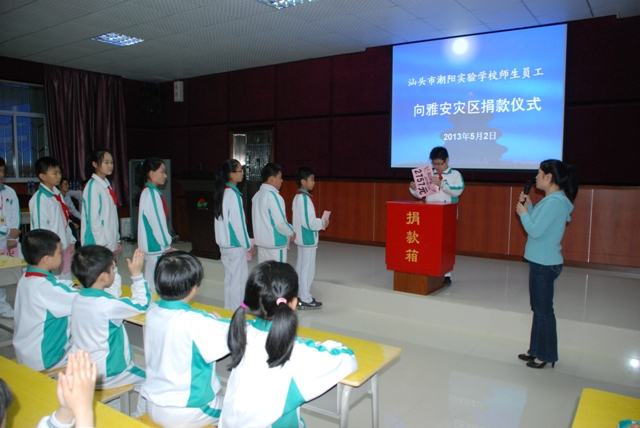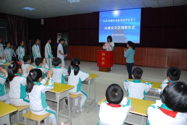 潮陽(yáng)實(shí)驗(yàn)學(xué)校師生積極為四川雅安災(zāi)區(qū)捐款 |
