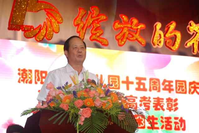 2013年7月24日上午,潮陽實驗幼兒園、實驗學校在學校體育館隆重舉行潮陽實驗幼兒園十五周年園慶暨潮陽實驗學校教育慈善基金會資助貧困大學生和高考獎勵表彰大會,出席大會的領(lǐng)導(dǎo)有:
