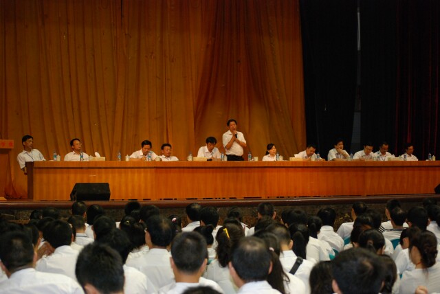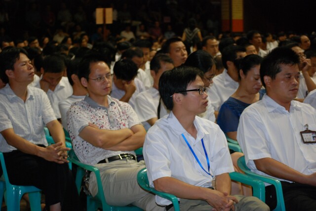 2013年8月30日下午3:00,潮陽實驗學校全體教職員工在體育館召開新學年開學動員大會。出席會議的有學校創(chuàng)辦人鄭立平董事長以及全體校務委員和全體教職員工共900多人。會議由學校副校長林少強主持,學校副校長、高中部負責人張復昌作了激動人心的“回顧與展望”為主題的動員報告。張校長用一串串擲地有聲的數(shù)字,一個個感人的事跡,充分肯定過去一年各學部、各部門所取得的優(yōu)秀成績以及中考、高考的輝煌業(yè)績。同時,向全體教職員工提出“責任、忠誠、質(zhì)量、堅守”四方面的新要求,希望新的學年更上一層樓。鄭立平董事長發(fā)表語重心長的講話,充分肯定全體教職員工為潮陽實驗學校創(chuàng)造這么響亮的品牌做出的貢獻;同時勉勵全體教職員工繼續(xù)奮力拼搏,再創(chuàng)佳績。我們堅信,在鄭董事長的大力支持下,在張復昌校長的正確領導下,潮陽實驗學校明天一定會更好。
