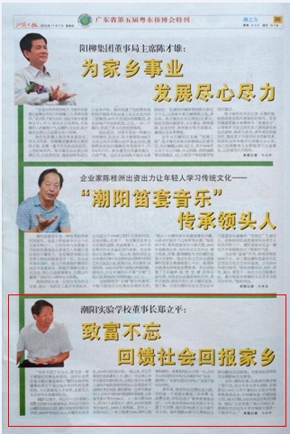 致富不忘回饋社會(huì)回報(bào)家鄉(xiāng)——《汕頭日?qǐng)?bào)》報(bào)道鄭立平董事長(zhǎng)回饋社會(huì)事跡 |