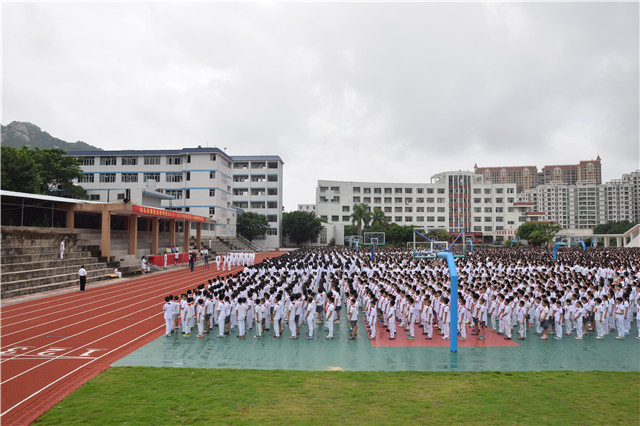 2015年9月1日上午8時,潮陽實驗學校在高中部操場隆重舉行2015-2016學年度第一學期開學典禮,參加此次活動的有全校師生共15000多人。應(yīng)邀參加此次典禮的有潮陽區(qū)人民政府林定亮區(qū)長、潮陽區(qū)人民政府馬文玲常務(wù)副區(qū)長、潮陽區(qū)教育局吳華瑾局長、潮陽區(qū)棉北街道辦事處黨委趙欽彬書記、潮陽實驗學校創(chuàng)辦人鄭立平董事長等。典禮由林少強副校長主持。