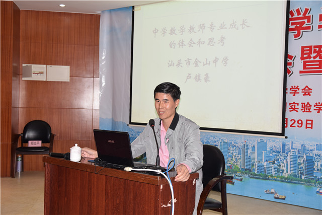 下午,華南師范大學(xué)劉秀湘教授上臺作學(xué)術(shù)年會報告,對2016年廣東高考數(shù)學(xué)的備考進行了一個深層次的分析。汕頭市金山中學(xué)特級教師盧鎮(zhèn)豪老師也作了精彩的報告,暢談自己對于中學(xué)數(shù)學(xué)教師專業(yè)成長的一些獨到的體會和思考。