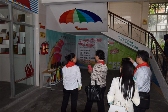 評估組一行觀看了我校鼓號隊表演,參加了第五聯(lián)合中隊的“同享愛心壓歲錢,共筑幸福中國夢”義賣活動,走進了紅領巾社團活動中心了解我校紅領巾小社團活動開展情況。我校的少先隊陣地建設更是讓評估組成員們贊不絕口。設備齊全的紅領巾校園電視臺、規(guī)范溫馨的小百靈廣播站、藝術感與“隊味”皆俱的大隊部,還有貼近隊員生活的“愛心雨傘”“種植基地”等少先隊活動陣地讓參觀的領導與專家深深地感受到了我校的少先隊工作是真正圍繞著全面提高隊員的綜合素質(zhì)來開展,這一系列的活動為隊員們的成長搭建了成長的舞臺。