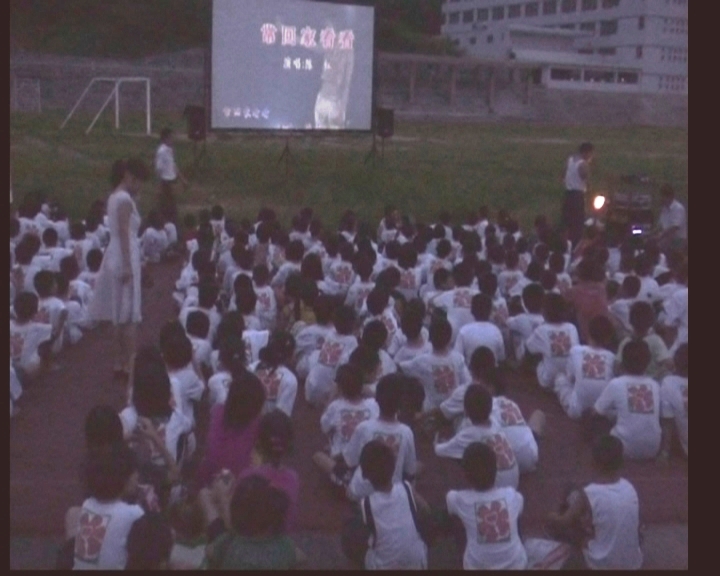 為了讓同學們的夏令營生活過得更加豐富多彩,更加有意義,潮陽實驗學校組織參加夏令營的同學在學校操場上觀看了露天電影《紅星小勇士》。