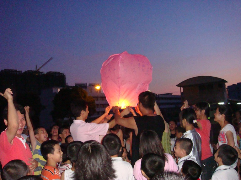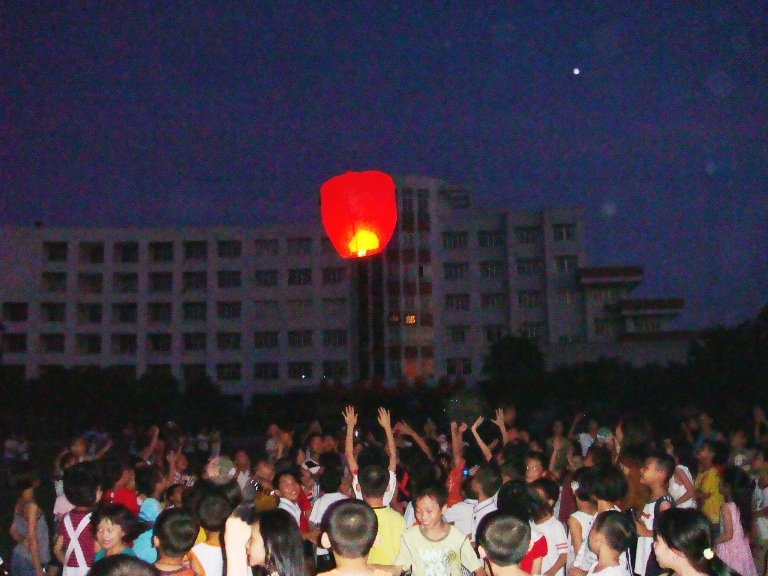 活動(dòng)伊始,老師和孩子們一起在孔明燈上寫(xiě)下祝福的心愿: “祝我們的祖國(guó)繁榮昌盛!”、“祝愿潮陽(yáng)實(shí)驗(yàn)學(xué)校步步高升!”、“祝親愛(ài)的爸爸、媽媽身體健康!”“祝敬愛(ài)的老師們天天開(kāi)心!”……真摯的祝福很快寫(xiě)滿(mǎn)了燈罩,每盞孔明燈都表達(dá)了同學(xué)們對(duì)偉大祖國(guó)的無(wú)比熱愛(ài),對(duì)母校的無(wú)限感激,對(duì)親人朋友的真誠(chéng)祝愿和感恩。隨后,同學(xué)們將滿(mǎn)載著美好心愿的數(shù)盞孔明燈點(diǎn)燃,小心用手托著。隨著燈內(nèi)的火慢慢燃燒,孔明燈開(kāi)始膨脹,最后在孩子們欣喜的歡呼聲中徐徐升上了廣闊的夜空。面對(duì)著孔明燈同學(xué)們默默祈禱,在放飛祝福和理想的同時(shí),孔明燈也為孩子們播撒著童年的快樂(lè)。