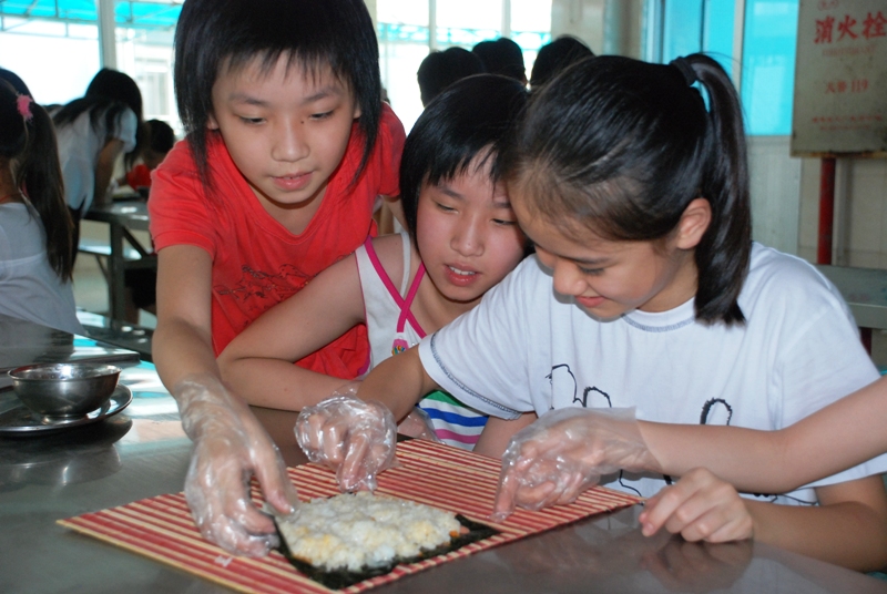 為豐富同學們的課余生活,增強大家的動手能力,7月13日下午,潮陽實驗學校夏令營營部組織開展了“一起做壽司”的活動,讓孩子自己制作壽司,一起品嘗。孩子們積極參與,充分享受到了自己動手制作壽司的樂趣。