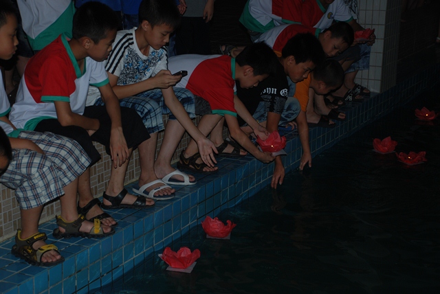 2012年7月28號晚上,潮陽實(shí)驗學(xué)校綜合樓五樓的游泳館里人聲鼎沸。池水碧波蕩漾,無數(shù)盞寄托著夢想和希望的“蓮花許愿燈”閃爍著點(diǎn)點(diǎn)燭光,在池水中搖曳生姿。 當(dāng)晚6:50分第一批放許愿燈的營員們就在各連連長的帶領(lǐng)下來到游泳館。他們個個手捧一朵嬌艷的紅色許愿燈,小心翼翼地點(diǎn)燃花蕊中的蠟燭,對著閃爍的燭光許下自己美好的愿望,那一張張純真的笑臉在燭光的映襯下更加可愛。隨后又有兩批營員上來點(diǎn)燃了許愿燈,親手放入了池水中,望著那飄動的燭光,孩子們久久不愿離去…… ![]() ![]() ![]() ![]() |