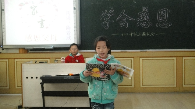 為了加強(qiáng)學(xué)生的思想道德建設(shè),教育孩子學(xué)會(huì)感恩。12月7日下午,小學(xué)部302中隊(duì)在學(xué)部公開(kāi)課室召開(kāi)了“學(xué)會(huì)感恩”主題隊(duì)會(huì)。隊(duì)會(huì)活動(dòng)通過(guò)誦讀一封感恩家書(shū),講《黃香溫席》的感人故事,合唱一首歌曲《父親》,歌伴舞《每當(dāng)走過(guò)你窗前》等表演,激發(fā)了學(xué)生對(duì)父母師長(zhǎng)的感恩之情。中隊(duì)會(huì)在主持人“常懷感恩之心的人是最幸福的,常懷感恩之情的生活是最甜美的”的結(jié)語(yǔ)中達(dá)到高潮。各隊(duì)員紛紛表示:感恩活動(dòng)會(huì)隨著中隊(duì)會(huì)的結(jié)束而開(kāi)始,并在以后的學(xué)習(xí)、生活中身體力行,學(xué)會(huì)用行動(dòng)去呵護(hù)此刻播種下的感恩種子生根發(fā)芽,茁壯成長(zhǎng)。![]() 出旗 ![]() 歌聲獻(xiàn)給父母 ![]() 給父母的一封信 ![]() 古今感恩故事 ![]() 二胡演奏 ![]() 舞蹈表演 ![]() 莊嚴(yán)的呼號(hào) |