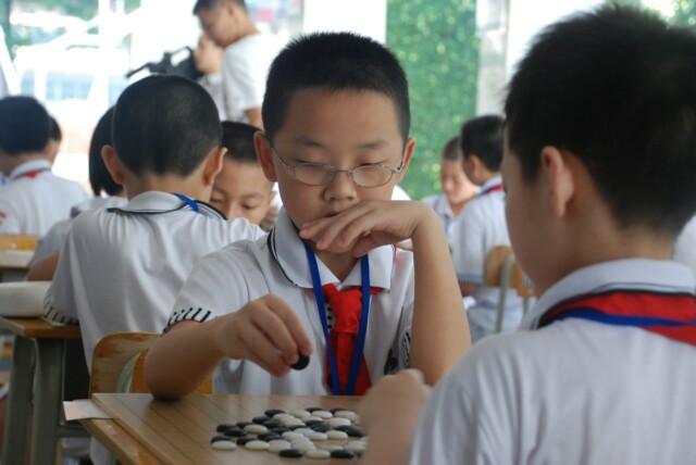 圍棋比賽是一項(xiàng)集益智與娛樂(lè)為一體的體育項(xiàng)目。小學(xué)部2013年第五屆“快樂(lè)圍棋”大賽在5月31日上午如期舉行。本次比賽學(xué)部要求一至五年級(jí)各班選報(bào)3名選手代表班級(jí)參賽。小選手們?cè)趯?duì)弈中全力以赴,敢闖敢拼,時(shí)而氣定神閑,靜思默想,時(shí)而眼急手快,思維敏捷,在方寸之間運(yùn)籌帷幄,沉著應(yīng)戰(zhàn),整個(gè)比賽緊張而有序。最終,經(jīng)過(guò)四輪激烈的對(duì)弈各年級(jí)分別決出第一名:110班、209班、301班、408班、509班。第二名:104班、210班、302班、407班、507班。第三名:104班、204班、304班、402班、505班。至此第五屆“快樂(lè)圍棋”大賽圓滿落下帷幕。