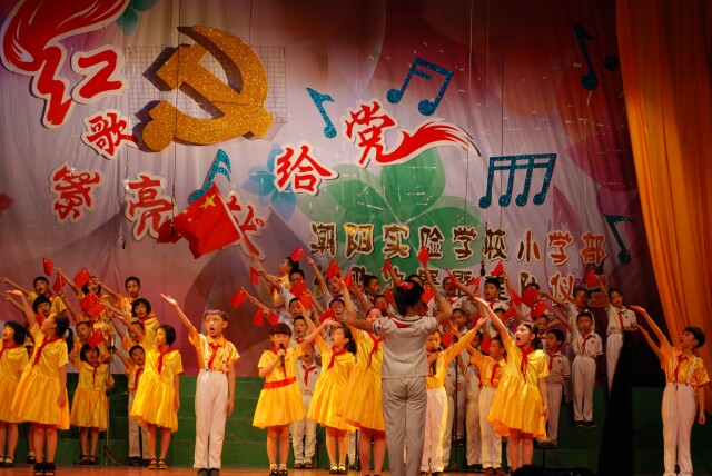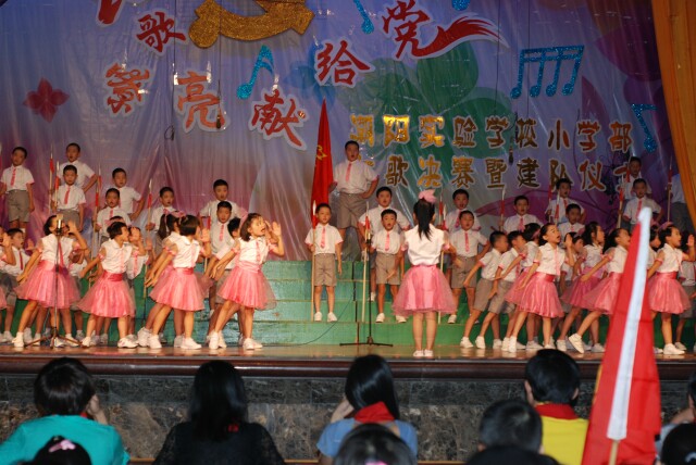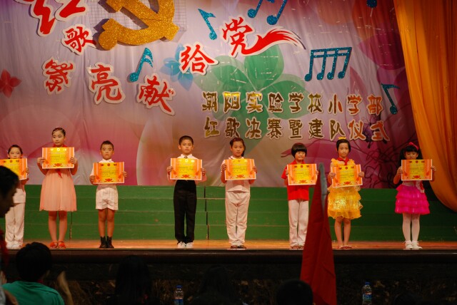 紅歌代代傳、歌聲頌祖國。為隆重紀(jì)念建國64周年,歌頌黨的偉大成就,激發(fā)我校師生熱愛祖國、熱愛黨的革命情懷, 10月16日下午,我部在體育館隆重舉行“紅歌嘹亮獻(xiàn)給黨”合唱比賽活動。 下午2:30,比賽正式開始。賽場內(nèi)人聲鼎沸,氣氛熱烈。各參賽班級以整齊的著裝、朝氣蓬勃的精神面貌進(jìn)入賽場。609班以一首《國歌》拉開了紅歌比賽的序幕,緊接著一首首充滿正氣和豪情的革命歌曲從同學(xué)們的口中飛出,《歌唱祖國》、《國家》、《沒有共產(chǎn)黨就沒有新中國》等紅色經(jīng)典歌曲,帶領(lǐng)師生重溫了在黨的領(lǐng)導(dǎo)下中華兒女共同建設(shè)偉大祖國的光輝歷程,唱出了參賽師生對祖國的無限崇敬,對黨和人民的無限忠誠,對學(xué)校的無限熱愛。臺上師生們嘹亮的歌聲、磅礴的氣勢,動人的旋律和情真意切的詞句,深深地感染著臺下每一位觀眾,他們不時報以熱烈的掌聲。最后王校長為本次紅歌比賽點評和總結(jié),他鼓勵我校師生唱好紅歌,發(fā)揚紅歌精神,繼承中華民族優(yōu)良傳統(tǒng),為報效祖國而努力奮斗。 此次比賽共評出一等獎和二等獎各五名。通過練歌、賽歌,全體師生受到了一次生動的革命傳統(tǒng)教育,增強了全體師生的愛國意識,嘹亮的歌聲表達(dá)了全校師生對黨對祖國深深的熱愛和美好的祝愿。 ![]() 204中隊的精彩表演 ![]() 210中隊的精彩表演 ![]() 308中隊的精彩表演 ![]() 310中隊的精彩表演 ![]() 401中隊的精彩表演 ![]() 407中隊精彩表演 ![]() 505中隊的精彩表演 ![]() 507中隊的精彩表演 ![]() 608中隊的精彩表演 ![]() 609中隊的精彩表演 ![]() 大隊會儀式 ![]() 大隊會儀式 ![]() 紅歌比賽獲獎中隊代表上臺領(lǐng)獎 ![]() 聘任輔導(dǎo)員 ![]() 向新成立中隊授中隊旗 ![]() 小學(xué)部校長鄒丹講話 ![]() 小學(xué)部校長鄒丹向新一屆大隊長授大隊旗 ![]() 新一屆大隊委員宣誓 |