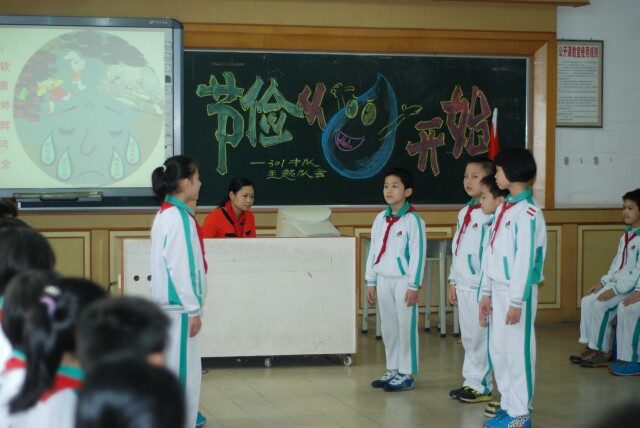 水是生命之源,世間萬(wàn)物缺少了水的滋潤(rùn)便無(wú)法生存�?涩F(xiàn)在全球水危機(jī)日益嚴(yán)重,寶貴的水資源在一點(diǎn)一滴地流失。為了使隊(duì)員們了解水的重要性以及知道如何節(jié)約用水、可持續(xù)用水,小學(xué)部301中隊(duì)于2014年4月3日下午在公開(kāi)課室,舉行了“節(jié)儉,從一滴水開(kāi)始”的主題隊(duì)會(huì)。 此次隊(duì)會(huì)流程規(guī)范,節(jié)目形式豐富多彩,圍繞主題展開(kāi),激起隊(duì)員們的情感共鳴,有詩(shī)朗誦、小品、三句半、拍手歌、手語(yǔ)舞、合唱等,隊(duì)員們?cè)谧詩(shī)首詷?lè)的同時(shí)也普及了不少關(guān)于水資源的常識(shí),對(duì)節(jié)約用水有了更進(jìn)一步的了解,如果地球上每一個(gè)人都竭盡所能節(jié)約每一滴水,水資源將永不枯竭!