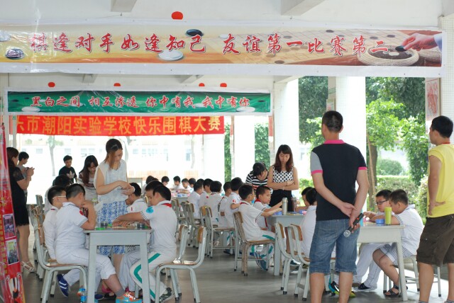 龍虎斗紋枰,黑白搏乾坤。在“六•一”兒童節(jié)來臨之際,潮陽實(shí)驗(yàn)學(xué)校小學(xué)部5月29日上午在教學(xué)樓一樓大廳舉辦了第六屆“快樂圍棋”晉級大賽,一至五年級共一百名同學(xué)參加了比賽。選手們你爭我奪,你攻我防,完全沉浸在緊張激烈的比賽當(dāng)中。經(jīng)過兩個(gè)多小時(shí)的緊張角逐,比賽成功落下了帷幕。本次比賽的宗旨是為了推廣圍棋的基礎(chǔ)教育,鍛煉孩子們的邏輯思維能力,開發(fā)孩子們的智商,讓更多的小朋友了解圍棋,熱愛圍棋,享受圍棋帶來的快樂。
