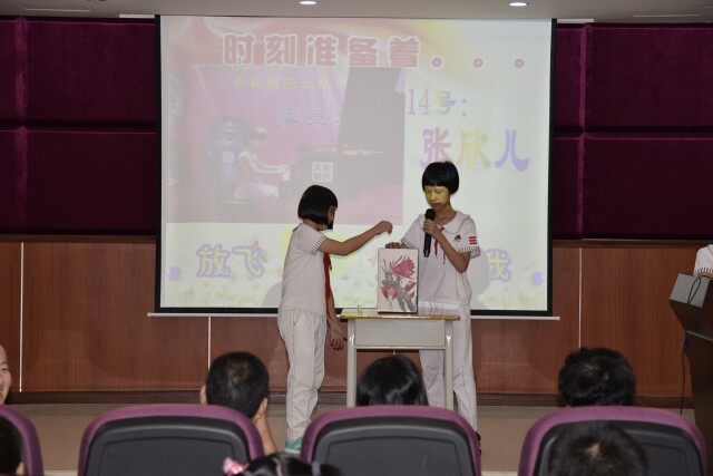 經(jīng)過(guò)海選、復(fù)選,歷時(shí)一個(gè)多月的大隊(duì)委改選活動(dòng)的決賽在10月13日晚上在學(xué)部會(huì)議廳拉開了序幕。參加此次活動(dòng)的有學(xué)部校長(zhǎng)鄒丹、副校長(zhǎng)王修穩(wěn)、政教處胡主任、黃主任、教務(wù)處李主任等教師代表和學(xué)部隊(duì)員代表。 活動(dòng)中,候選隊(duì)員展示出了我校少先隊(duì)員的風(fēng)采。選手們的演講深情并茂、熱情激昂。才藝展示環(huán)節(jié),隊(duì)員們將自己的才藝與現(xiàn)場(chǎng)的互動(dòng)活動(dòng)完美融合,展示了隊(duì)員們很強(qiáng)的自身魅力和活動(dòng)感召力。經(jīng)過(guò)師生代表當(dāng)場(chǎng)投票,我校少先隊(duì)十三屆大隊(duì)委成員誕生了,他們是: 大 隊(duì) 長(zhǎng) 廖梓煌 副大隊(duì)長(zhǎng) 鄭伊婷 副大隊(duì)長(zhǎng) 張煒丹 大隊(duì)旗手 陳鎮(zhèn)隆 組織委員 陳苗欣 宣傳委員 劉佳婷 紀(jì)檢委員 陳若欣 學(xué)習(xí)委員 鄭沐欣 科技委員 黃哲軒 文娛委員 張欣兒 體育委員 吳隆燦 勞動(dòng)委員 郭婕婷 廣播站站長(zhǎng) 歐陽(yáng)菁 廣播站副站長(zhǎng) 劉子圣 動(dòng)聽的歌聲打動(dòng)了在場(chǎng)的師生 ![]() 精彩的武術(shù)表演 ![]() 魔術(shù)表演 ![]() 選手彈奏電鋼琴 ![]() 選手激情高歌 ![]() 隊(duì)員代表投票 ![]() 呼號(hào) ![]() 學(xué)校領(lǐng)導(dǎo)與選手們合影 |