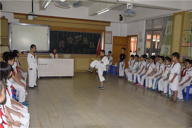 為了培養(yǎng)同學(xué)們的集體榮譽(yù)感,熱愛少先隊(duì),形成班級凝聚力,從而能團(tuán)結(jié)同學(xué),認(rèn)真學(xué)習(xí),勇于創(chuàng)新,勇于開拓,共創(chuàng)輝煌,努力爭創(chuàng)優(yōu)秀中隊(duì)。301中隊(duì)在第七周周五的第一節(jié)課開展了“我愛少先隊(duì)”主題隊(duì)會,隊(duì)員們用詩歌朗誦、合唱、講故事、知識競賽、跆拳道等多種形式表達(dá)學(xué)生對班級的熱愛,對少先隊(duì)的熱愛。在學(xué)校領(lǐng)導(dǎo)和學(xué)校少先隊(duì)輔導(dǎo)員的領(lǐng)導(dǎo)和支持下,301中隊(duì)62名隊(duì)員活動非常認(rèn)真、積極,投入度特別高,學(xué)生顯得很自信,充分展示了班級的形象和優(yōu)良的班風(fēng),活動結(jié)束后得到了大家高度的夸贊。