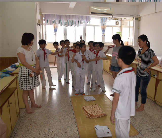 為了切實提高學生綜合素質(zhì),鍛煉學生生活自理的能力,促進學生寢室的秩序化、標準化管理,增進親子感情,二年級組于5月28日上午9:10開展了“小鬼當家” 寢室內(nèi)務整理展示活動。展示內(nèi)容包含規(guī)范解戴紅領(lǐng)巾、疊校服、兩生合作完成疊被單等。展示活動得到生活部的大力支持,55位生活老師分22個場地組織活動,現(xiàn)場指導、點評學生完成情況。二年級師生近700人以及650多位學生家長參加了此次活動。