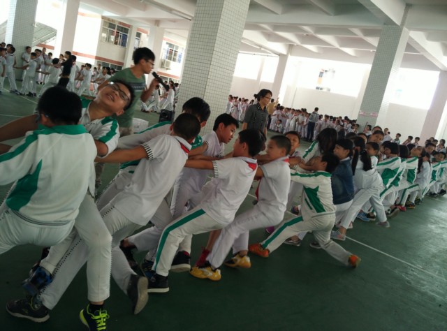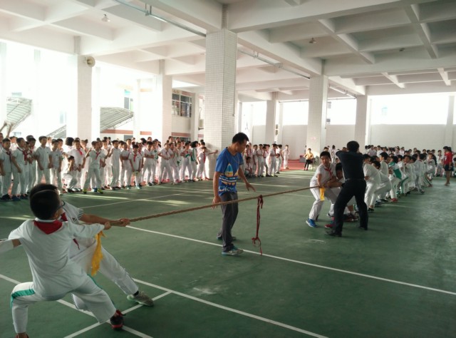 為了豐富學生的課余生活,培養(yǎng)學生的團隊精神和集體榮譽感,2015年11月11日下午第六、七節(jié)課,小學部五年級全體師生在操場上舉行了一場振奮人心的拔河比賽。 比賽過程中,各班參賽隊員個個精神飽滿、斗志昂揚。學部王校長也蒞臨現(xiàn)場感受氣氛并為隊員們進行賽前指導。比賽一開始,現(xiàn)場氣氛異常高漲,參賽隊員鼓足了勁,漲紅了臉,抓緊了繩,傾全力于一身,集合力于一繩,齊力奮戰(zhàn)。熱情的啦啦隊在場外吶喊加油助威,震耳欲聾的聲音此起彼伏,將比賽一步步推向了高潮。此刻的賽場上,同學們的吶喊聲、加油聲、歡呼聲和團結拼搏的身影交織在一起,成為了校園里一道最亮麗的風景線! 經(jīng)過激烈的龍爭虎斗,最后502班、507班、510班獲得一等獎,501班、503班、504班、506班獲得二等獎,505班、508班、509班獲得三等獎。 此次拔河比賽,不僅鍛煉了同學們的體魄,增強了學生的體質(zhì),更增添了班級的凝聚力,各班級也加深了彼此之間的友誼,為創(chuàng)建和諧校園增添了一抹亮色! ![]() 比賽開始——全場歡騰 ![]() 激動時刻——勝利在望 ![]() 亮麗的風景線——啦啦隊 ![]() 齊心協(xié)力,用盡全力 ![]() 師生同心,以身示范 |