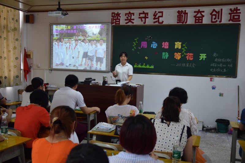 烈日消不去我們因“愛”聚會的熱情, 清風(fēng)鼓起了我們?yōu)?ldquo;愛”啟航的風(fēng)帆! 本屆二年級家長會分為內(nèi)務(wù)整理和班級家長會兩個部分,在全體師生的用心策劃和家長朋友的大力支持下,加上生活老師的精心配合、孩子們的共同努力,贏取了驚人的成功喜悅。 內(nèi)務(wù)整理中展風(fēng)采,激烈氛圍中享歡樂 為了強化學(xué)生的內(nèi)務(wù)整理意識,培養(yǎng)學(xué)生自理、自立的能力,培養(yǎng)學(xué)生之間團結(jié)合作精神,更進一步創(chuàng)造和諧的校園生活環(huán)境,二年級組于6月3日上午在學(xué)生宿舍樓舉行了內(nèi)務(wù)整理展示活動。 此次內(nèi)務(wù)整理展示活動比賽前,各個班級所指定的寢室里分別準(zhǔn)備有兩張竹席、兩張被子、四件校服作為比賽的道具,班主任將各個寢室的學(xué)生分成兩個小組。學(xué)生們既想展示自我風(fēng)采,又想給在場的爸爸媽媽呈現(xiàn)一個最棒的自己,各個都整裝待發(fā),躍躍欲試。 第一個環(huán)節(jié)是學(xué)生自己系紅領(lǐng)巾,只見學(xué)生們用靈活的小手在胸前那鮮紅的紅領(lǐng)巾中穿來穿去,不一會兒,一條條整潔的紅領(lǐng)巾飄揚在胸前,也呈現(xiàn)在觀賽者眼前。學(xué)生疊起校服來也是得心應(yīng)手,掀起比賽高潮的要數(shù)雙人合作疊被子啦,一來要疊得規(guī)整,二來速度要快,這就要考驗參賽者兩人的默契啦!比賽口令剛下達,各個小組的加油聲此起彼伏,很是熱烈,在場家長也紛紛拿起手機將孩子的成長印痕定格下來。比賽結(jié)束后,依據(jù)不同的賽果,每個學(xué)生分別獲得帶有“CYSY”的遮陽帽和吹龍、笛子等獎品。 此次活動不僅旨在對學(xué)生自立、自制、自理的培養(yǎng),更增進學(xué)生之間的關(guān)懷,團結(jié)友愛之情,而且,此次活動作為家長開放日活動環(huán)節(jié)之一,也為家長零距離見證孩子的點滴進步,給予家長和孩子更多的相處交流的時光提供了一個平臺。 平凡之中見偉大,溫馨之中傳愛意 炎炎的烈日沒有阻擋住家長們?yōu)?ldquo;愛”前進的腳步,盡管周一美食節(jié)就有很多的家長來和老師們交談過,但是今天,是他們最為期盼的一天,班級家長會亦是他們最為期待的一刻,99.7%的到會率、靜悄悄的會場、全神貫注的狀態(tài),是最好的見證。 不到兩個小時的家長會,老師們卻準(zhǔn)備了整整一年。 孩子們的繪畫、寫字、寫話作品,以及美麗的全家福,把教室的墻壁裝點一新,給活動的環(huán)境穿上了盛裝。孩子們豐富而歡樂的活動瞬間(PPT),和著優(yōu)美的音樂,畫卷般在家長們的眼前徐徐展開,是活動美麗的前奏。 一聲聲稚嫩的呼喚和溫存的心語在孩子們的心愿卡上傾訴,家長們都心領(lǐng),自己的到來是孩子最美的心愿;一張張表彰的名單在小小主持人的清脆嗓音中頻傳,家長們都明白,每一個孩子都是閃亮的星星;一份份精彩的合作宣言在班主任和科任教師的愛心措辭中轉(zhuǎn)達,家長們都懂得,孩子的成長離不開家的浸染;一句句樸實的育兒經(jīng)典在家長代表的謙恭謹(jǐn)言中流露,家長們都堅信,只有堅守合作的諾言,孩子的藍天定會陽光燦爛…… 這些都是平凡的瞬間,但我們?yōu)楹⒆娱_拓了偉大的成長空間;這些都是溫馨的畫面,但我們?yōu)楹⒆娱_墾了愛的花園。 ![]() ![]() ![]() ![]() ![]() ![]() |