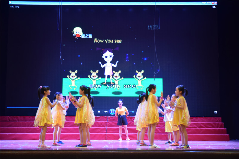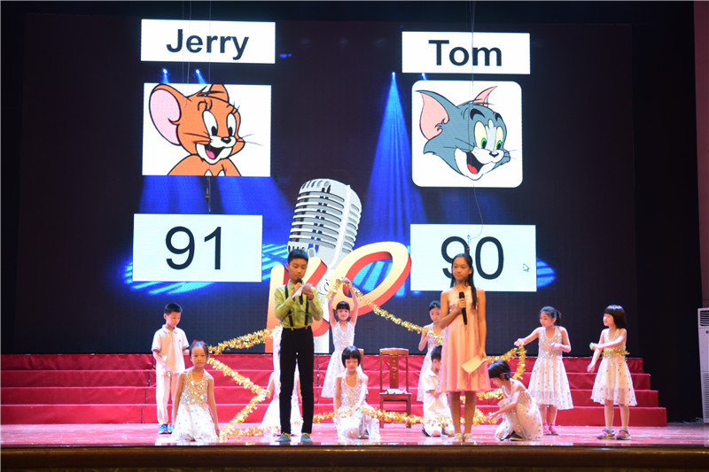 本次英語角的主題是:I’m a singer. I’m the best. 此次活動(dòng)主要是讓孩子通過唱英語歌曲,了解英語歌曲的文化,提高學(xué)習(xí)英語的興趣和英語表達(dá)水平。節(jié)目開始,師生同臺(tái)共跳兔子舞,既活躍了氣氛,也激起學(xué)生參與的興趣。全程共有ABC song , Colour song , Number song and Twinkle star 四首歌。臺(tái)上歌手精彩演繹,臺(tái)下師生互動(dòng)熱烈。臺(tái)上、臺(tái)下的PK環(huán)節(jié)將此次活動(dòng)推向高潮,全場激動(dòng)不已,最后以主持人的深情寄語結(jié)束。全體師生始終沉浸在歡樂的氣氛中。