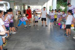 耐心和毅力的較量 瞧,在夏令營的活動(dòng)課上,同學(xué)們正玩得不亦樂乎呢!你聽,教室里傳出一陣陣倒!倒!的吶喊聲。原來是大家正在進(jìn)行緊張激烈的骨牌對(duì)擂。只見比賽的同學(xué)上場后非常麻利地將骨牌均勻地按一定間距排好,有趣的是它們或形似一條長龍,或形似一幅圖案,同學(xué)... 踩高蹺 樂陶陶 加油,加油慢一點(diǎn),慢一點(diǎn),隨著裁判老師的一聲令下,一聲高過一聲的吶喊在小學(xué)部籃球場上回蕩,夏令營游藝活動(dòng)踩高蹺正式拉開了序幕。只見營員們小心翼翼地踩在圓圓的高蹺上,雙手緊緊地拉住高蹺上用來固定的繩子,努力保持好身體的平衡,一步一步朝終... 從7月21日下午開始,每到下午活動(dòng)課的時(shí)間,校園一樓大廳一片歡騰,全校師生沉浸在打保齡球的歡樂氣氛里�;顒�(dòng)開展井然有序,各個(gè)連隊(duì)的孩子在劃定的區(qū)域內(nèi)進(jìn)行比賽,每個(gè)場地都排起了長龍。營員們依次手持小球瞄準(zhǔn)球瓶向前滾地?cái)S出,頗有專業(yè)運(yùn)動(dòng)員的風(fēng)范。沒有比賽的... 燒出火熱情,烤得樂翻天夏令營燒烤記 幾場陣雨洗涮了一地的灰塵,美味燒烤散發(fā)著誘人的油香,一群群活潑的小營員正在為這美味佳肴忙碌著。雨后的太陽格外燦爛,今年的團(tuán)聚尤為熱情。一雙雙小手在火爐旁不停地勞碌著,一份份美食在爐架上歡快地舞蹈,一張張小嘴細(xì)細(xì)品嘗... 為了讓孩子們度過一個(gè)既有趣又有意義的夏令營,給更多的同學(xué)展示自我和表現(xiàn)自我的空間,營部于每天下午的活動(dòng)時(shí)間開展了形式各樣的游戲活動(dòng)。瞧!小學(xué)部一樓大廳又沉浸在一片歡樂的氛圍中。學(xué)生喜聞樂見的釣小鴨游戲活動(dòng)正在進(jìn)行,由釣小鴨的漁翁手執(zhí)魚竿,用魚竿上的... 享受田園風(fēng)情 樂學(xué)樂玩 潮陽實(shí)驗(yàn)學(xué)校夏令營營部在7月19日、20日、21日分三批組織同學(xué)們到 汕頭農(nóng)科所進(jìn)行參觀實(shí)踐。汕頭市農(nóng)科所把位于市區(qū)的場地,按科學(xué)的內(nèi)容、園林的外貌、潮汕的特色、規(guī)模的產(chǎn)業(yè)、良好的效益為宗旨,建設(shè)集科研試驗(yàn)、示范推廣、科普教育、生產(chǎn)經(jīng)... 汕頭市潮陽實(shí)驗(yàn)學(xué)校2011年夏令營棋類活動(dòng)自開營后的第二天就如火如荼地在各個(gè)連開展起來了,將一直延續(xù)到夏令營活動(dòng)的最后一天,在本次活動(dòng)中特設(shè)置了營員們簡單易學(xué)而又趣味十足的斗獸棋、飛行棋和跳子棋。營員們在小小的棋盤上盡情發(fā)揮著自己的智慧,能進(jìn)能退,能攻... 一個(gè)小袋袋,一只只小袋鼠,一串串歡笑!這就是我們夏令營的一個(gè)特別受營員們喜歡的游戲――跳跳樂。每天下午一到游戲時(shí)間,營員們就排著長長的隊(duì)伍在一樓大廳等著,盼著。在指導(dǎo)老師和連長的指導(dǎo)下,營員們進(jìn)行著小組對(duì)抗賽。你瞧,他們拼命地奔著,跳著,為了榮譽(yù),... 為了體驗(yàn)生活,感受勞動(dòng)的快樂!夏令營的每天下午,在食堂舉行了特別的生活體驗(yàn)活動(dòng)――做壽司。同學(xué)們激情很高,積極參與!他們分工合作,有的扶壽司席,有的鋪糯米,有的切火腿,有的鋪青菜,然后卷成一個(gè)卷,再切成幾段,共同分享!看似簡單的一個(gè)壽司,里面卻包含... 一起來跳營歌營舞和快樂在一起 當(dāng)東山還沉浸在睡夢之時(shí),潮陽實(shí)驗(yàn)學(xué)校的營員們已經(jīng)在《和快樂在一起》的樂曲伴奏下歡快地舞動(dòng)起來了 唱營歌跳營舞是夏令營生活一個(gè)永恒的主題活動(dòng),所有的營員在開營的第一天就開始練習(xí),不管是大孩子還是剛剛幼兒園畢業(yè)的孩子,都隨著... |