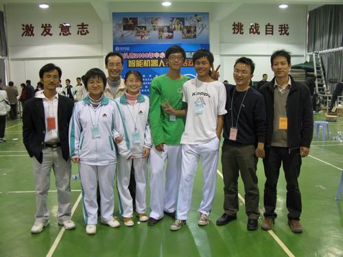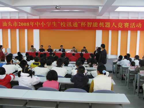 2008年汕頭市“校訊通”杯中小學(xué)生智能機(jī)器人競(jìng)賽活動(dòng)于12月7日在金禧中學(xué)舉行。我校組隊(duì)參加了高中組足球項(xiàng)目的比賽并榮獲佳績(jī)。其中A隊(duì)許倬爾和陳曉芬勇奪冠軍;B隊(duì)彭程和袁紫曼獲得亞軍。高中組團(tuán)體總分列全市第一。