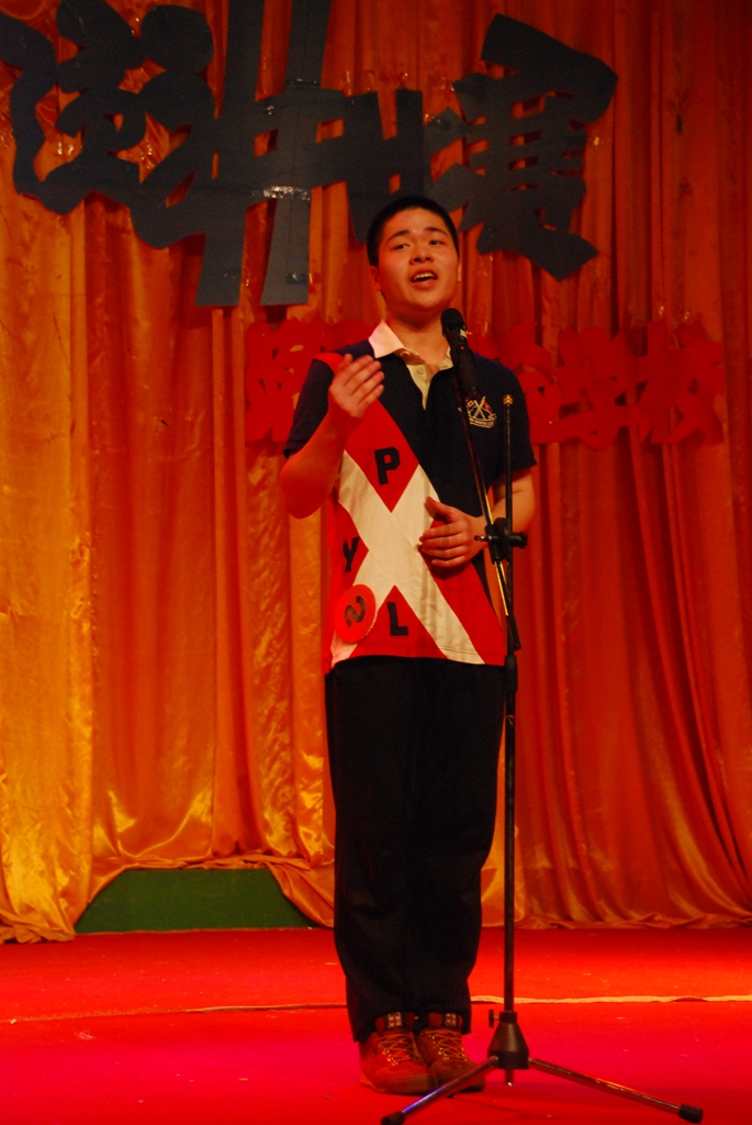 在汕頭市潮陽實驗學(xué)校高中部政教處、英語組、高一高二年級組的支持下,由高中部英語角主辦的第二屆英語講比賽于2011年5月13日晚在體育館成功舉行。
