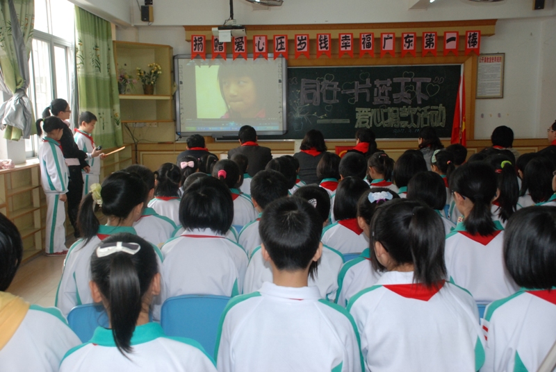 捐贈儀式在一首《愛的奉獻》中拉開序幕。區(qū)團委鄭書記熱情發(fā)言,她向隊員們傳達了上級會議精神,號召隊員們積極為困難少年兒童奉獻自己的愛心。小學部鄒校長的發(fā)言給隊員們留下了深刻的印象,幫助他人,互助友愛是我們當代少年兒童應具備的優(yōu)良品德。在觀看完《留守的世界》后,不少隊員流下了同情與關愛的淚水。隨后,各中隊代表將自己中隊隊員捐贈的愛心壓歲錢放進捐款箱。隊員們紛紛表示,能夠幫助小伙伴、奉獻愛心、參與到社會公益事業(yè)中感到幸福和開心。