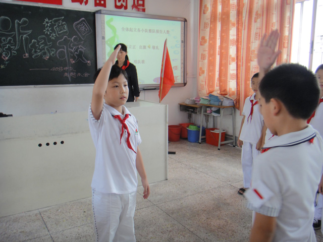 10月28日下午我們408中隊舉行了以“文明新綠撒校園”為主題的中隊活動。本次隊會展示活動主題突出、內(nèi)容鮮活、形式新穎。每個隊員都積極參與,認真排練、精心準備,活動形式有相聲、快板、小品、知識問答、詩朗誦、葫蘆絲伴舞、全班合唱等。學生參與活動的積極性很高,時間安排也很恰當,演出節(jié)目的質(zhì)量也比較高,她們的表現(xiàn)都是那么的沉著、鎮(zhèn)定、自信、大方。
