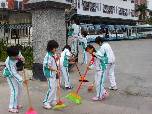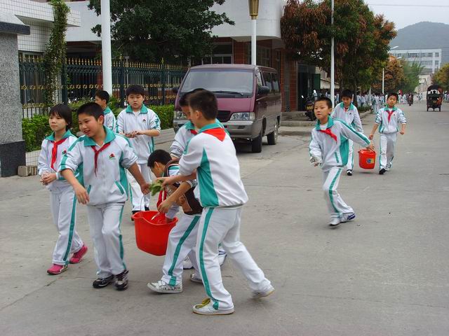 三月十五日,四年級其它班級也陸續(xù)行動,校園里,校園外到處都活躍著同學們勞動的身影,你看,同學們正在學校的體育館里拖地呢,校園外的馬路上,大家都揮舞著掃帚,忙的滿頭大汗。還有不少同學來來往往的提水,倒垃圾,大家萬眾一心只為把校園打扮的更加美麗。