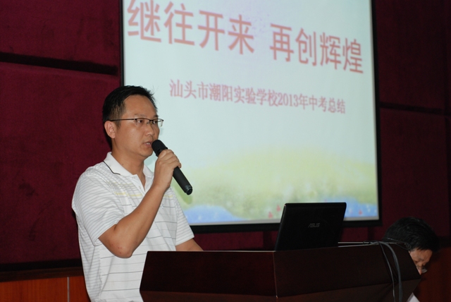 為更好反思總結(jié)我校2013屆中考工作,傳承中考復(fù)習(xí)備考經(jīng)驗(yàn),做好2014屆中考備考工作, 2013年10月15日晚7點(diǎn),潮陽(yáng)實(shí)驗(yàn)學(xué)校初中部全體教師齊聚四樓多功能廳,隆重舉行2013年中考總結(jié)會(huì)議。